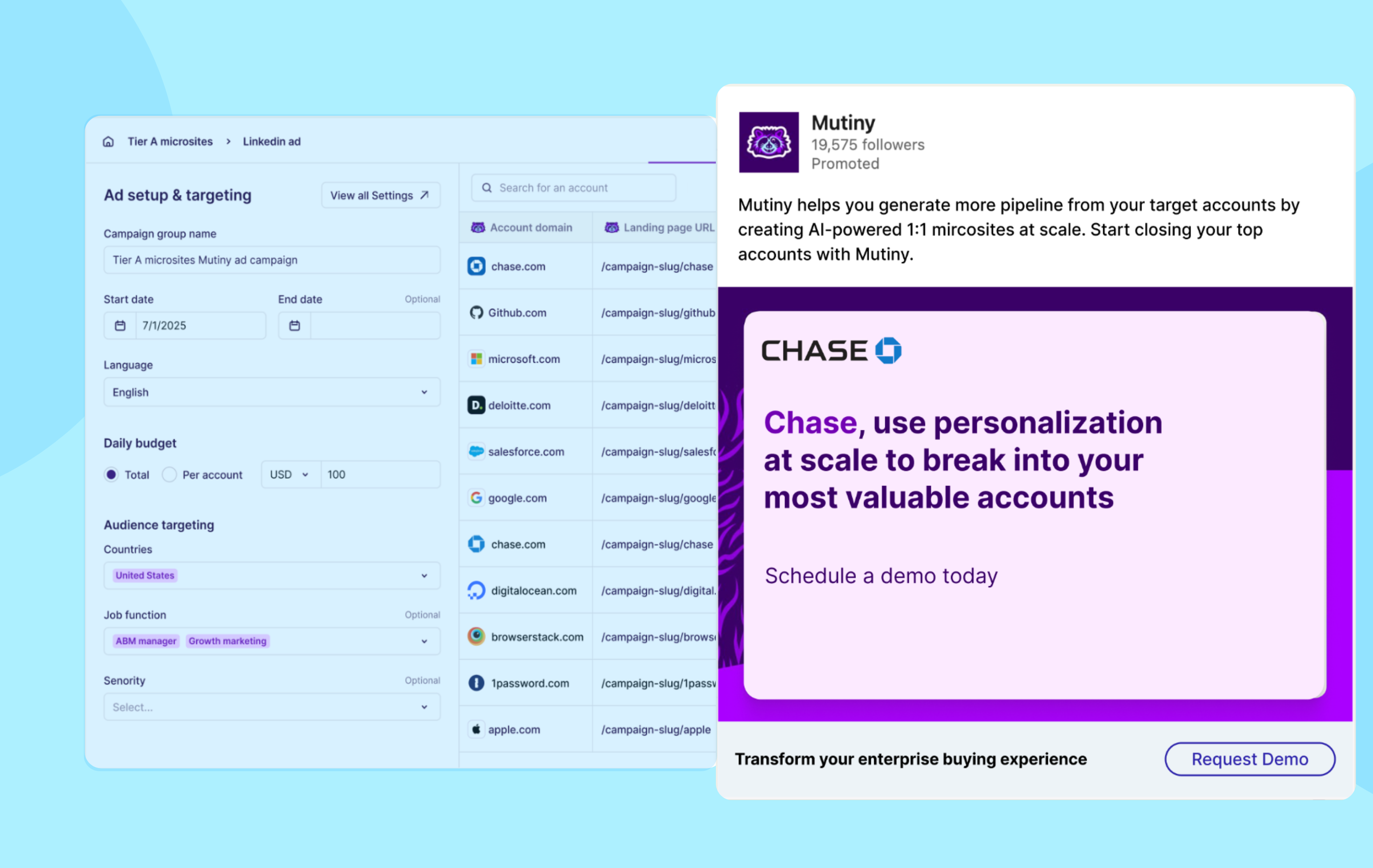 AI handles the heavy lifting, from account research, 1:1 landing pages and ad creative. Launch in hours, not weeks.Distribution that reaches buyers fast